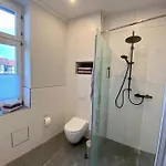 该公寓有1间卧室. Fewo Otto- Sanierte Ferienwohnung Im Einzeldenkmal设有1间洗澡间,配备步入式淋浴间 和分开的洗手间.